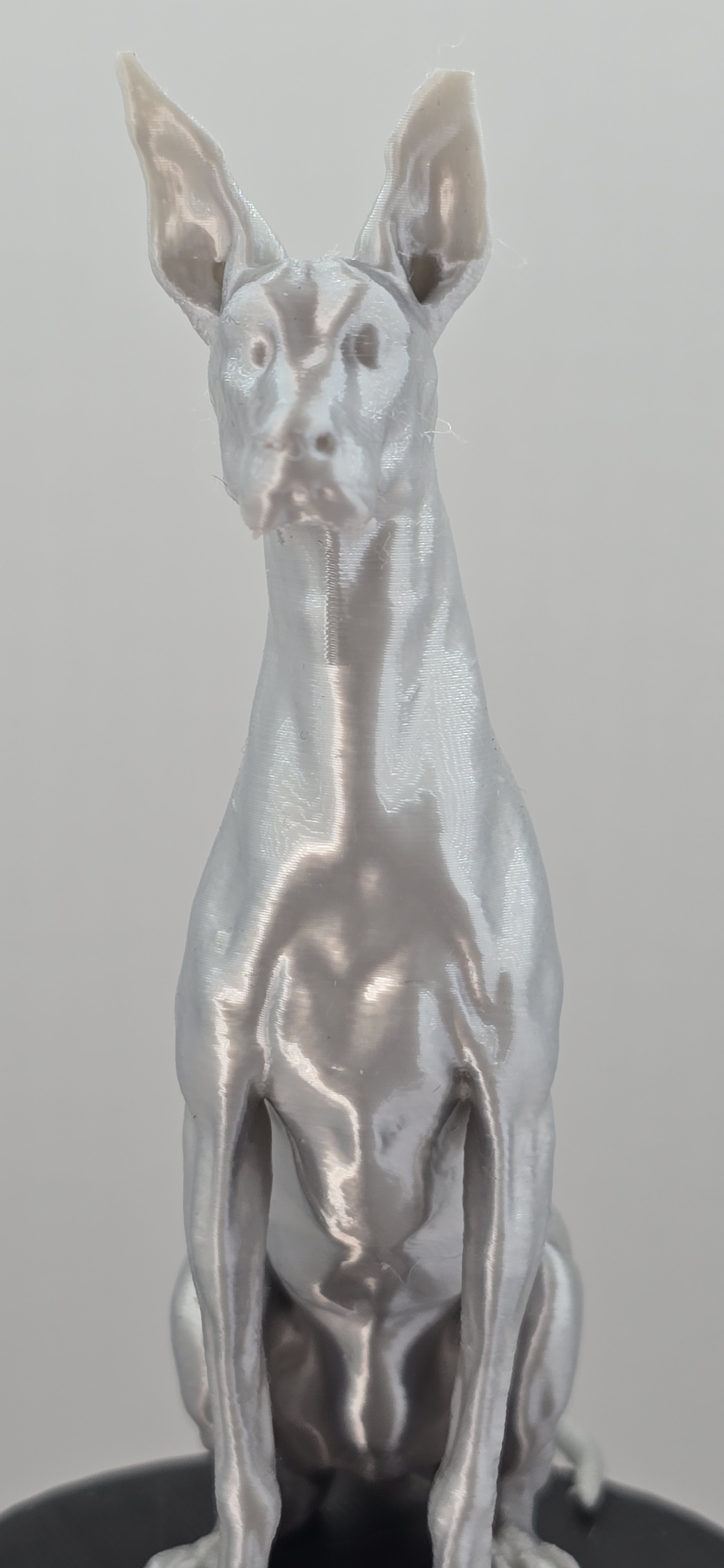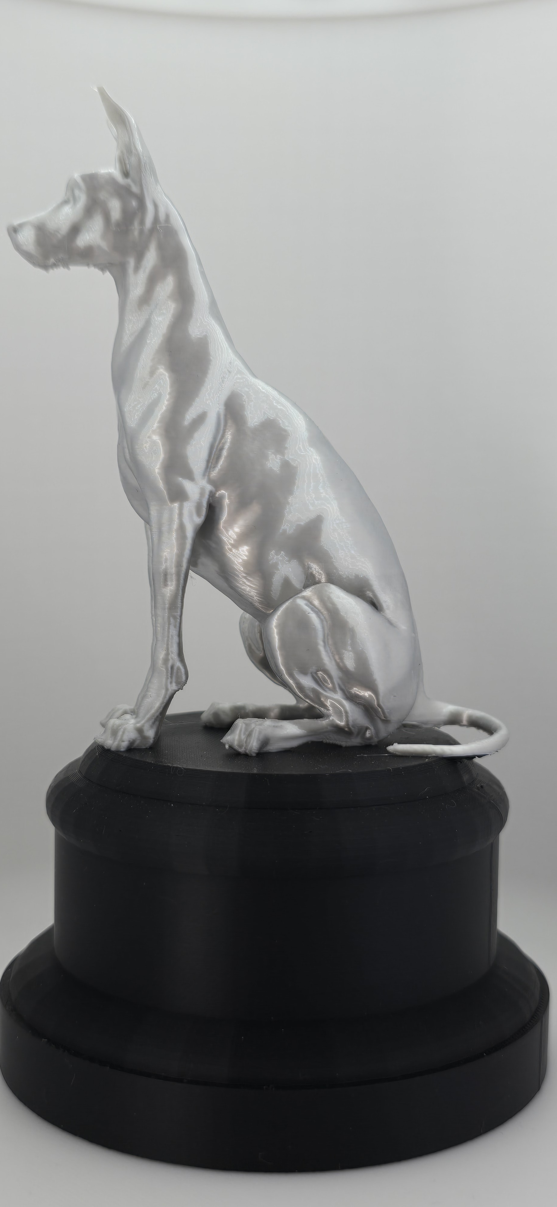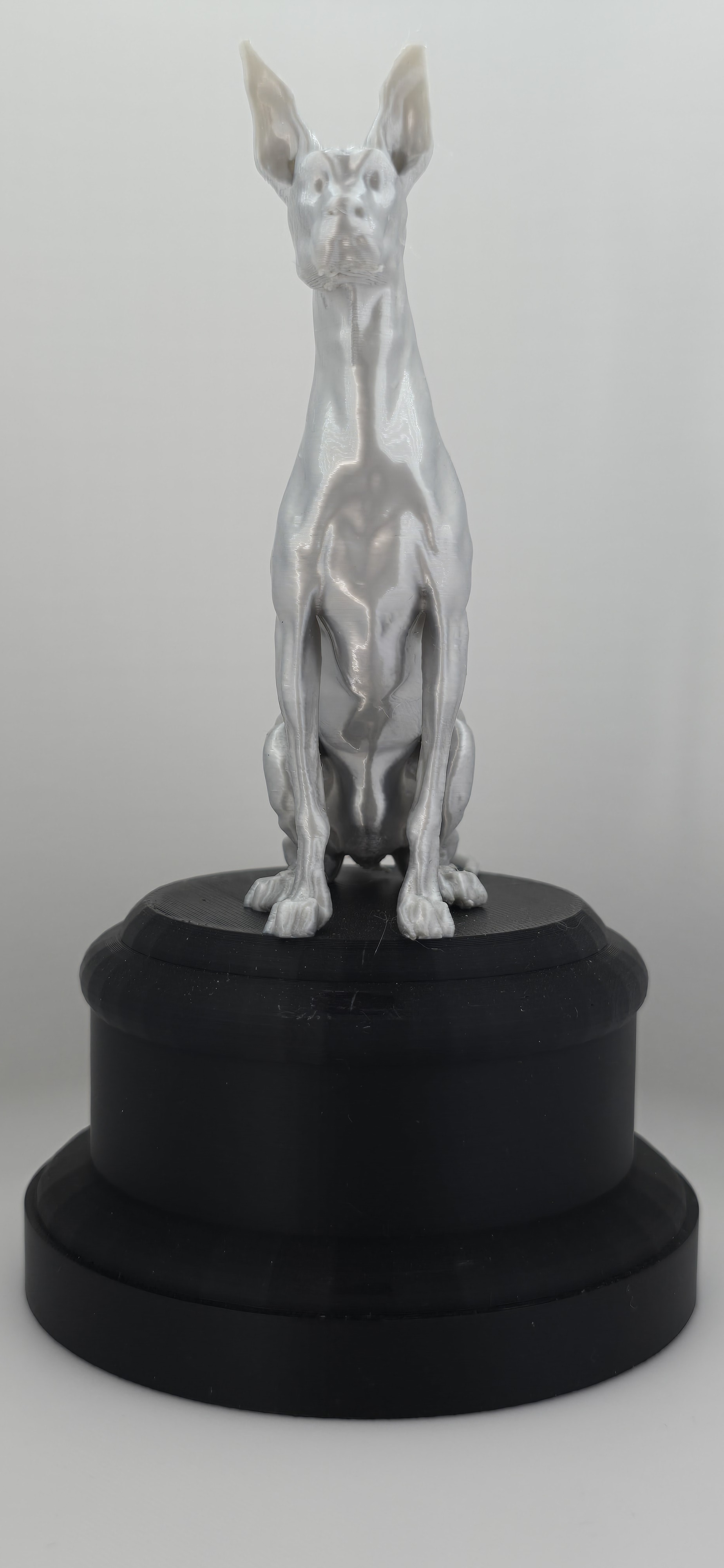 Oscar is geen gewone hond. Dit prachtig gedetailleerde 3D-geprinte beeldje straalt karakter en elegantie uit. Met zijn gespierde houding, gespitste oren en doordringende blik lijkt hij recht je ziel in te kijken. Of hij nu op je bureau staat of in je woonkamer pronkt – Oscar trekt gegarandeerd de aandacht.